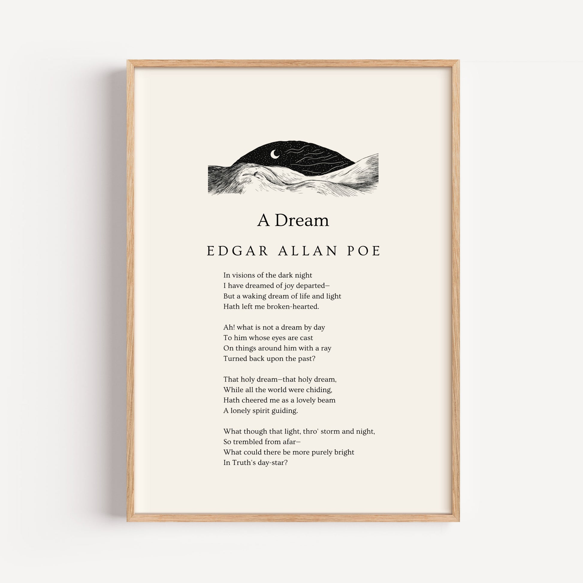 Moody and introspective, this Poe poem print brings a touch of literary darkness to your wall. Ideal for gothic or poetic spaces, it’s professionally giclée printed on FSC‑certified 200 gsm fine art paper and offered in several sizes.
