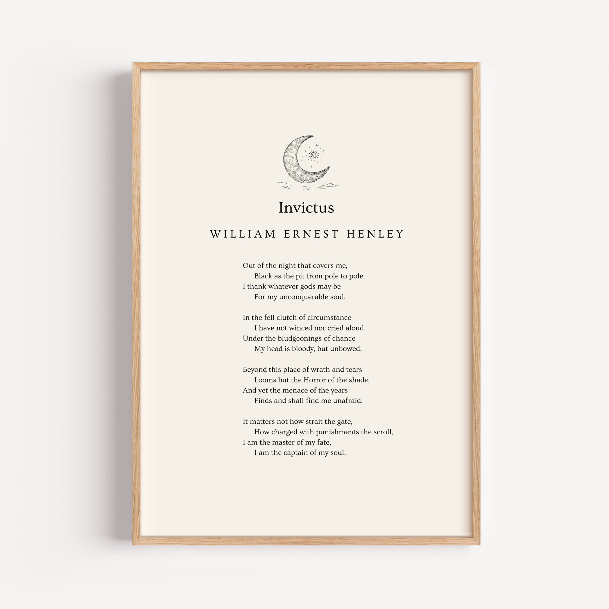 Bold in message, minimalist in design—this Invictus poem print radiates resilience and calm. A powerful piece for milestones, studies, or motivational walls. Printed via giclée on FSC‑certified 200 gsm fine art paper, in various sizes.