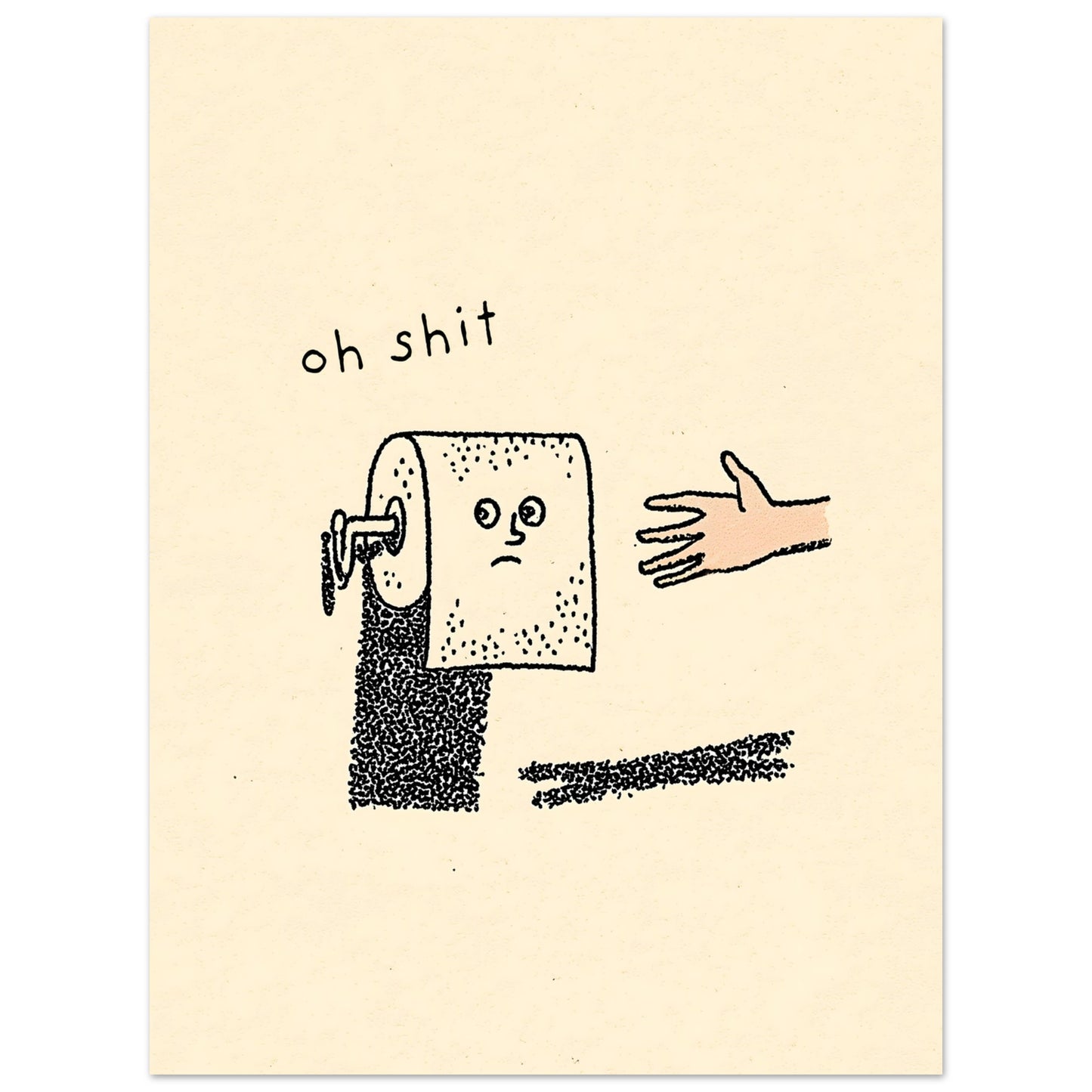 Bring cheeky humour into your bathroom with this minimalist “Oh Sh*t” toilet roll print. Its simple lines and wit make it a fun, modern addition to quirky powder rooms or guest baths. Printed on FSC‑certified fine art paper and available in multiple sizes.