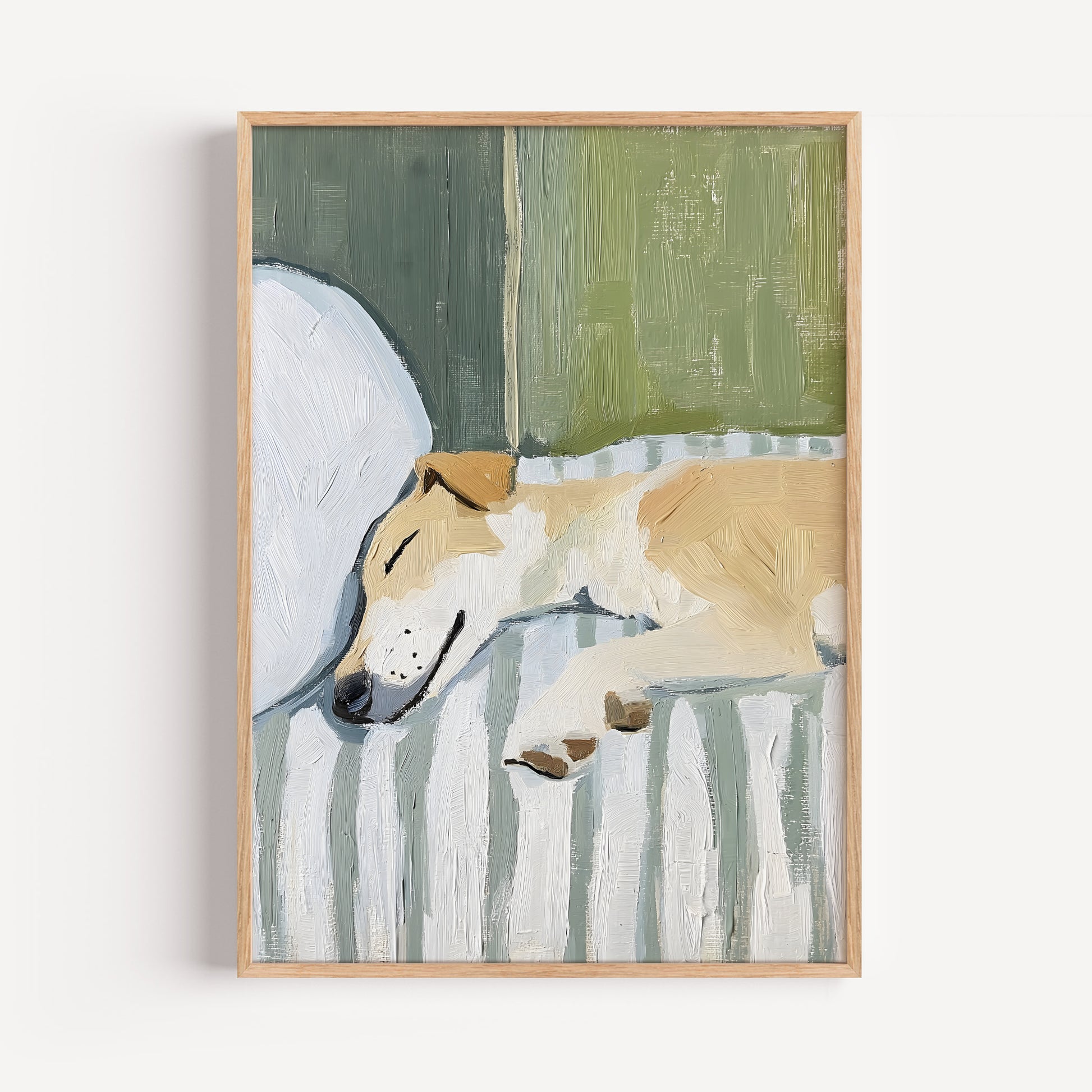 Elevate your decor with the sleek and gentle elegance of this Whippet wall art print. Beautifully capturing the breed’s graceful lines and calm presence, this artwork suits minimalist and contemporary spaces alike. Professionally giclée printed on FSC-certified 200gsm fine art paper and available in various sizes—a refined choice for Whippet lovers.